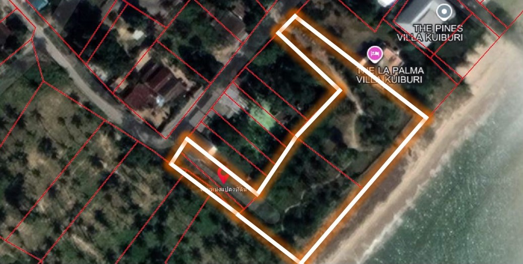 ขายที่ดินทำเลดีที่สุดในพื้นที่บ่อนอกกุยบุรี รูปตัว U หน้ากว้างติดทะเล 81.3 เมตร มีทางเข้า-ออก 2 ทาง