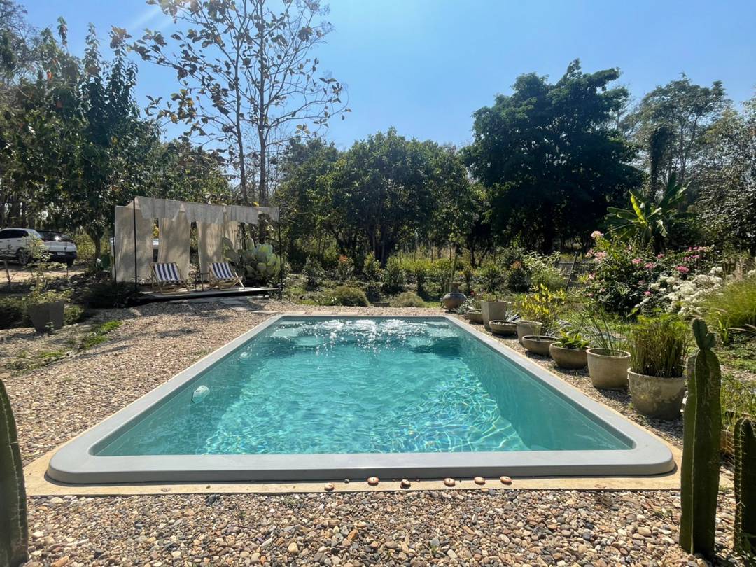 – สระว่ายน้ำระบบเกลือขนาด 4×6 เป็นจากุชชี่ ลึกประมาณ 1.2 เมตร