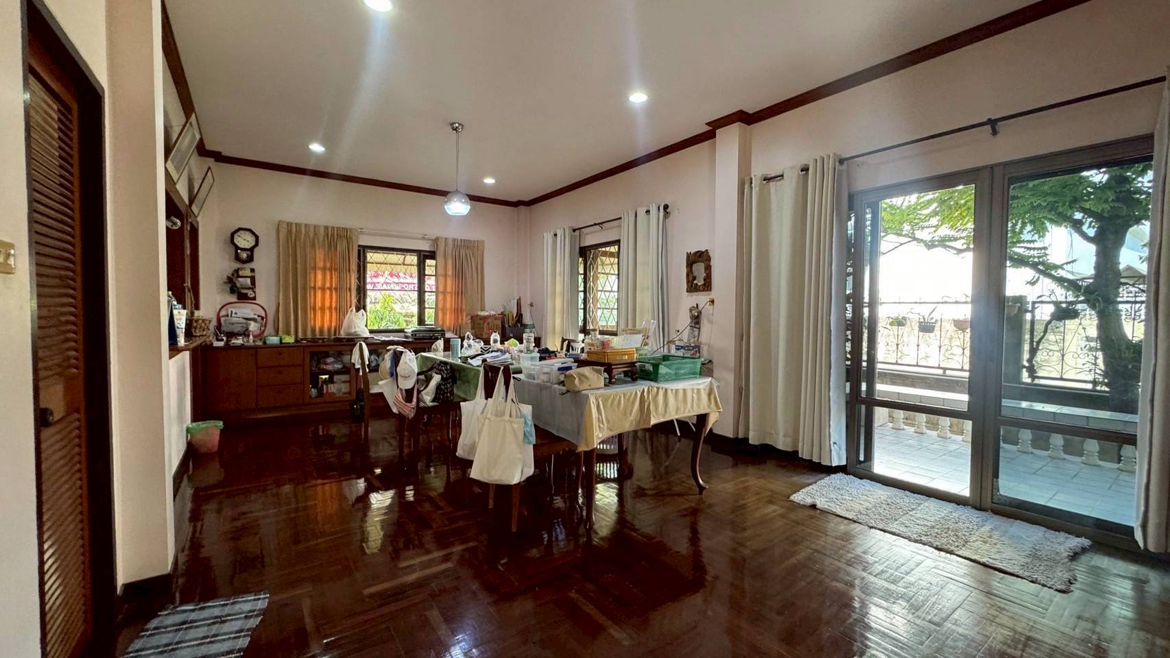 สร้างโดยบริษัท โรยัลเฮ้าส์ เฟอนิเจอร์บิ้วอิน ,พื้นไม้ปาเก้ ,วัสดุในการก่อสร้างบ้าน มีคุณภาพ โครงสร้างแข็งแรงมาก หน้าบ้านหันหน้าไปทางทิศใต้ ลมดีมากมาก คะ เงียบ สงบ ที่ดินเป็นที่ดินถุงทอง พื้นที่สนามหญ้ากว้าง พื้นที่ใช้สอย 240 ตรม. ทำเลดี