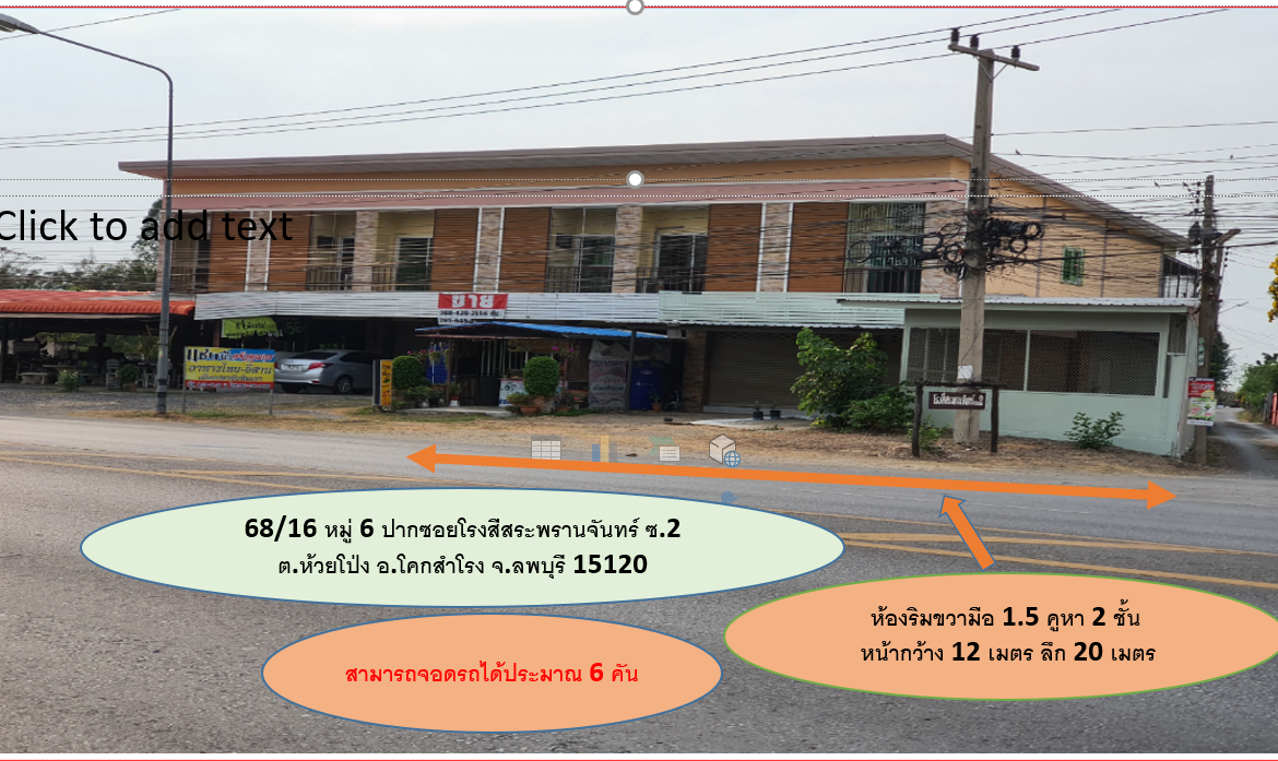 – ประเภทอาคาร: อาคารพานิชย์ 2 ชั้น 1.5 คูหา ต่อเติมด้านหน้าและด้านข้าง