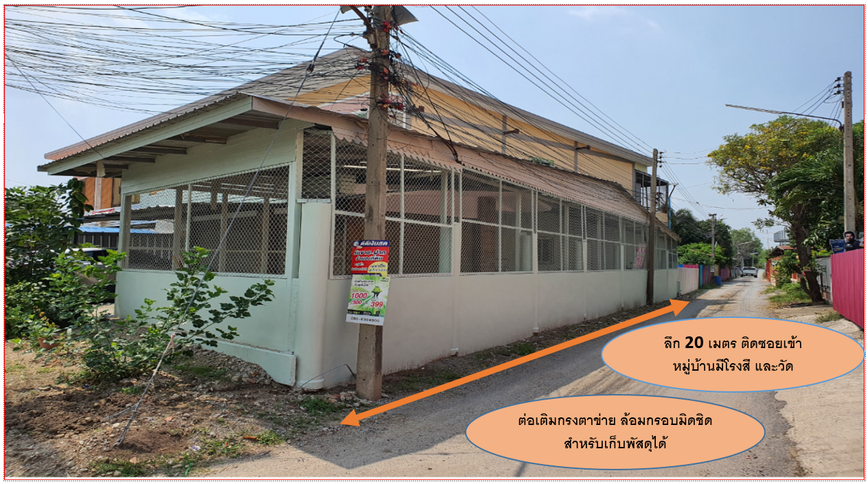 - ด้านข้างอาคารมีซอยเข้าหมู่บ้านขนาดย่อม มีโรงสี และวัด รถวิ่งเข้า-ออก ตลอด