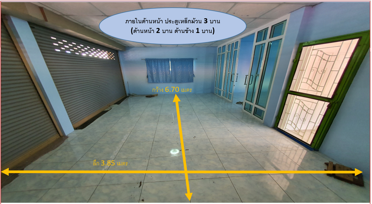 - มีพื้นที่เหลือสำหรับต่อเติมห้องด้านข้างได้ ประตูเหล็กบานเลื่อน 3 บาน (ด้านหน้า 2 บาน และด้านข้าง 1 บาน)