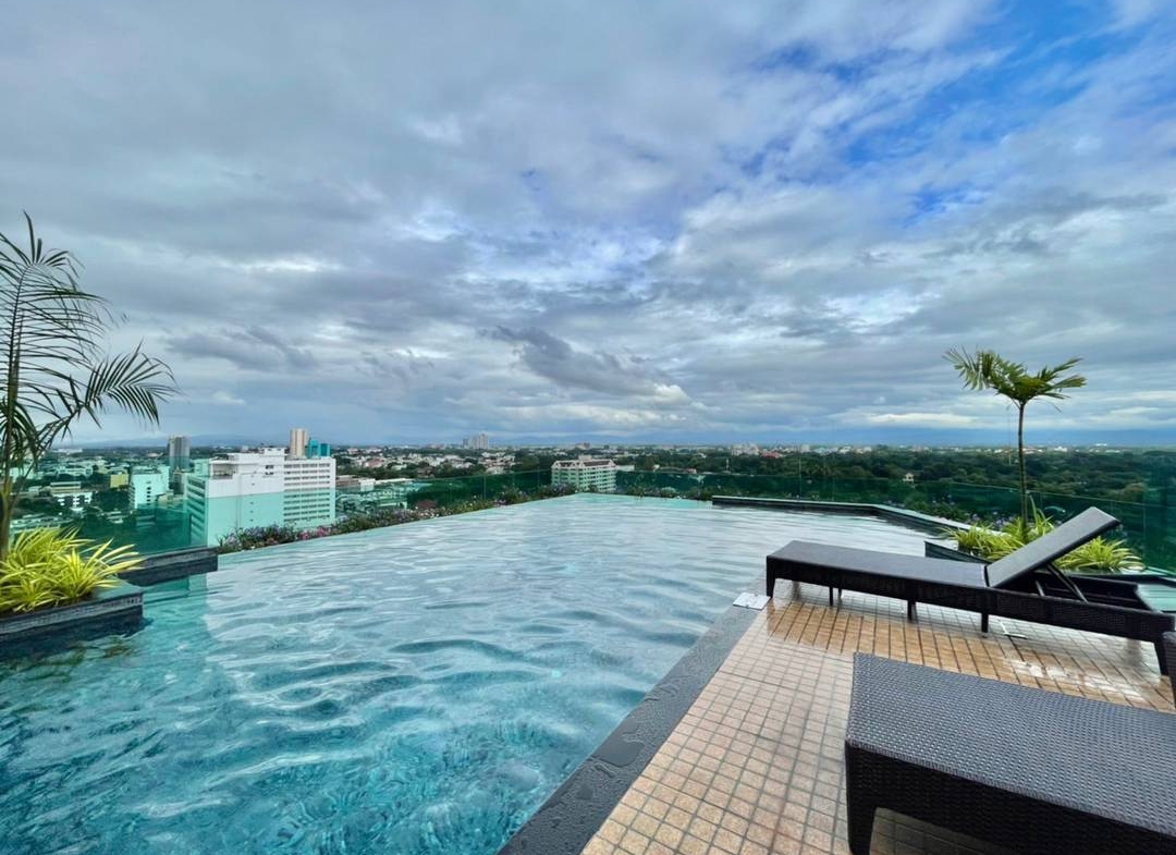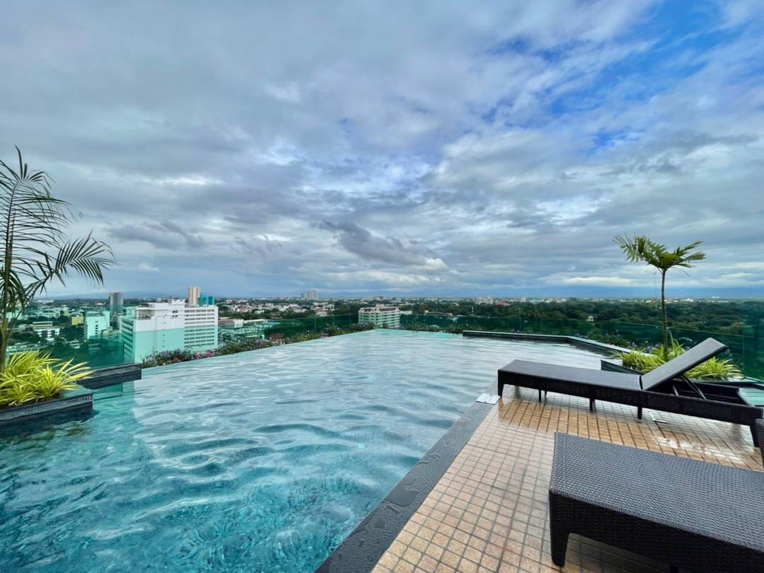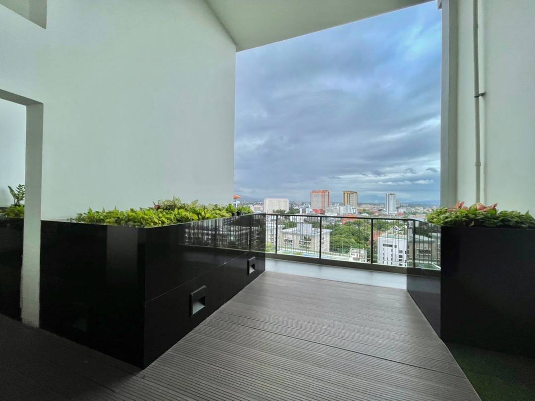 Structure of Lanna Architecture Answer all your needs with a living room with green areas in the building, gardens and roof gardens to make residents feel airy like being in a resort that combines the difference of Lanna charm with modern city life together with a 360 degree view of Chiang Mai city on the rooftop