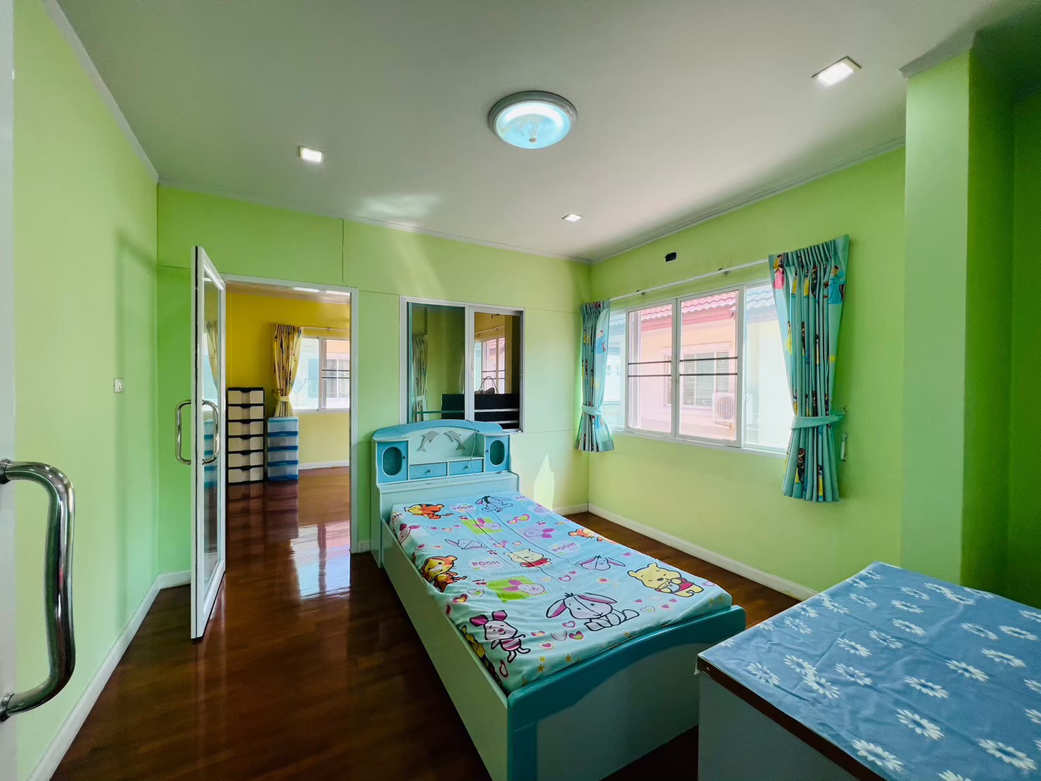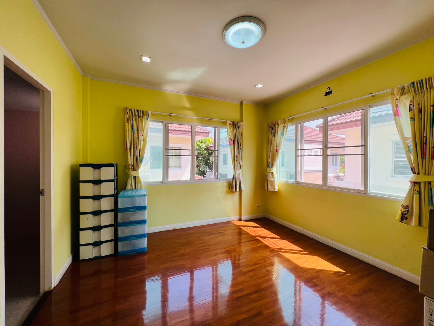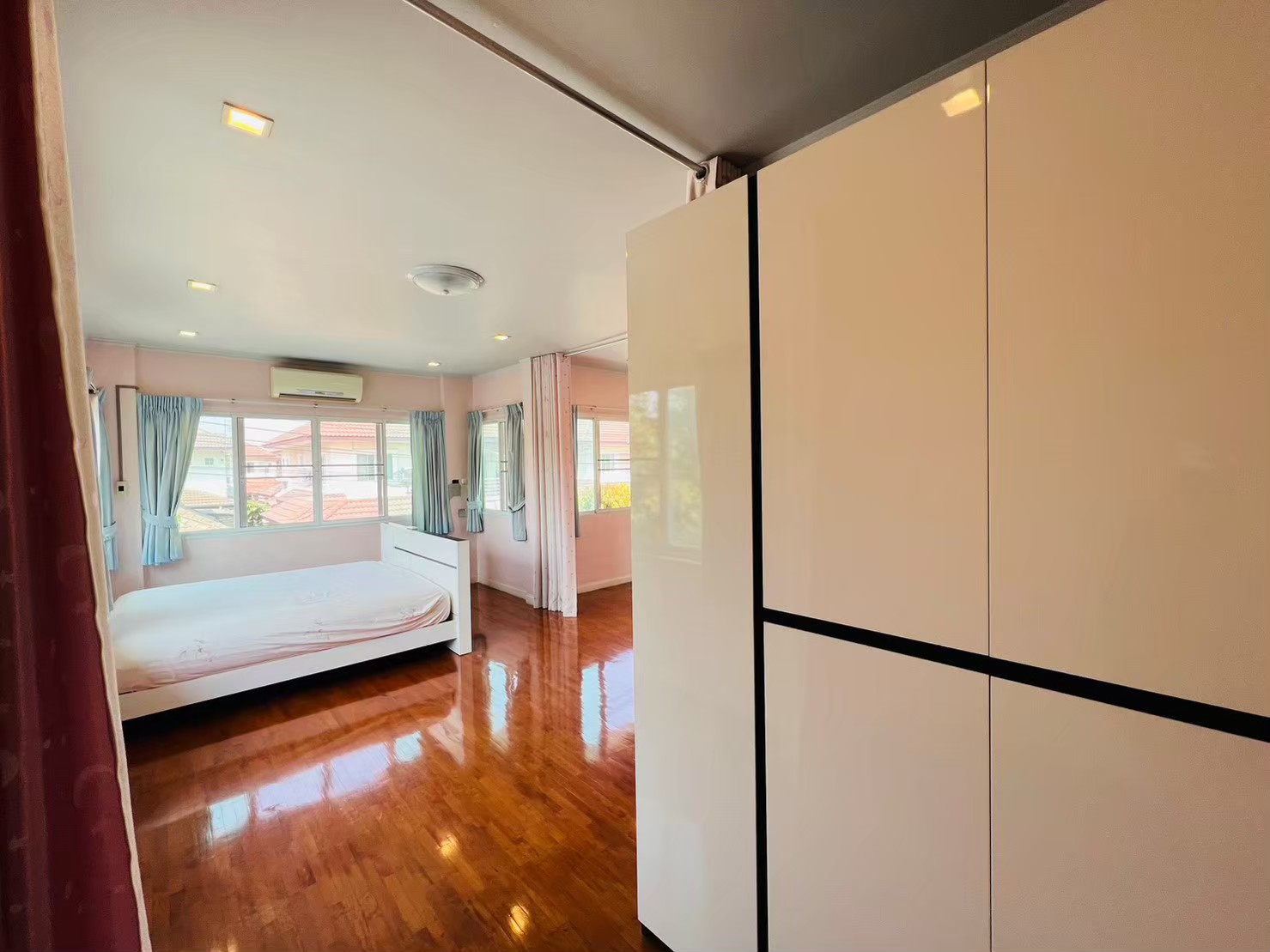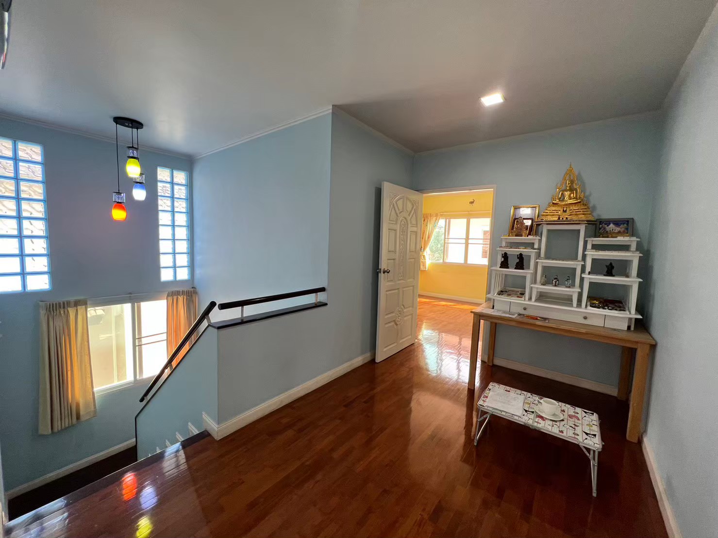 – พื้นชั้นบนปูพื้นปาร์เก้ไม้มะค่า