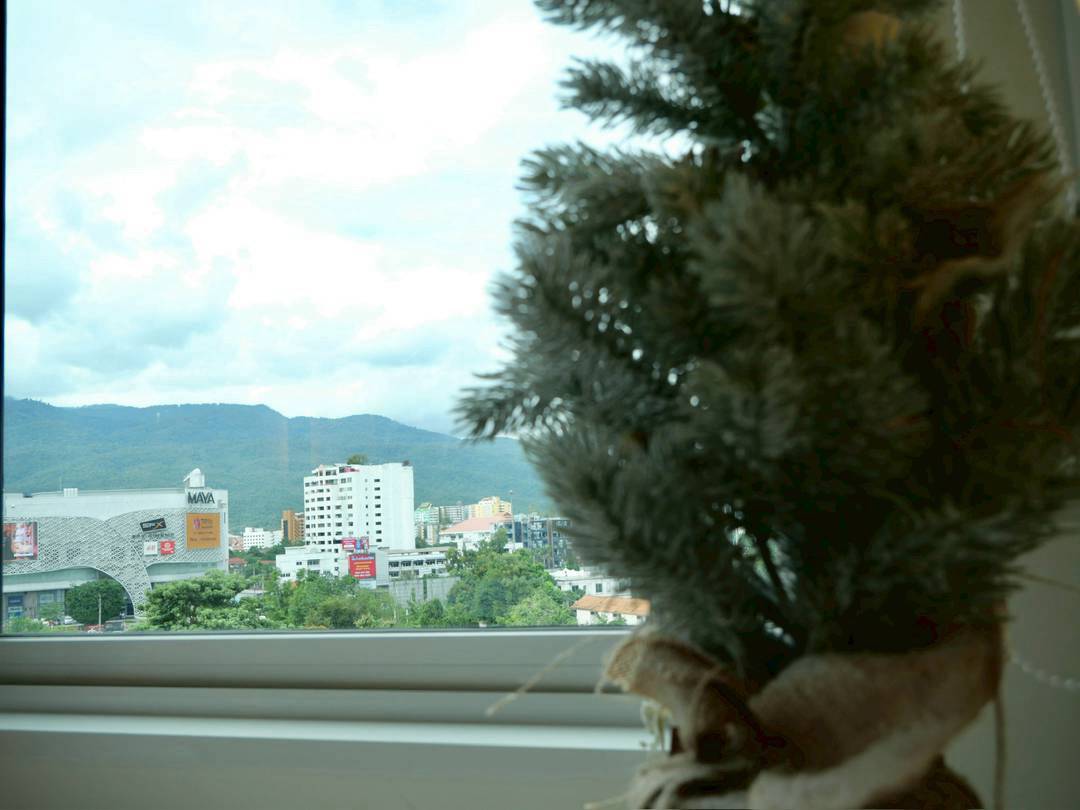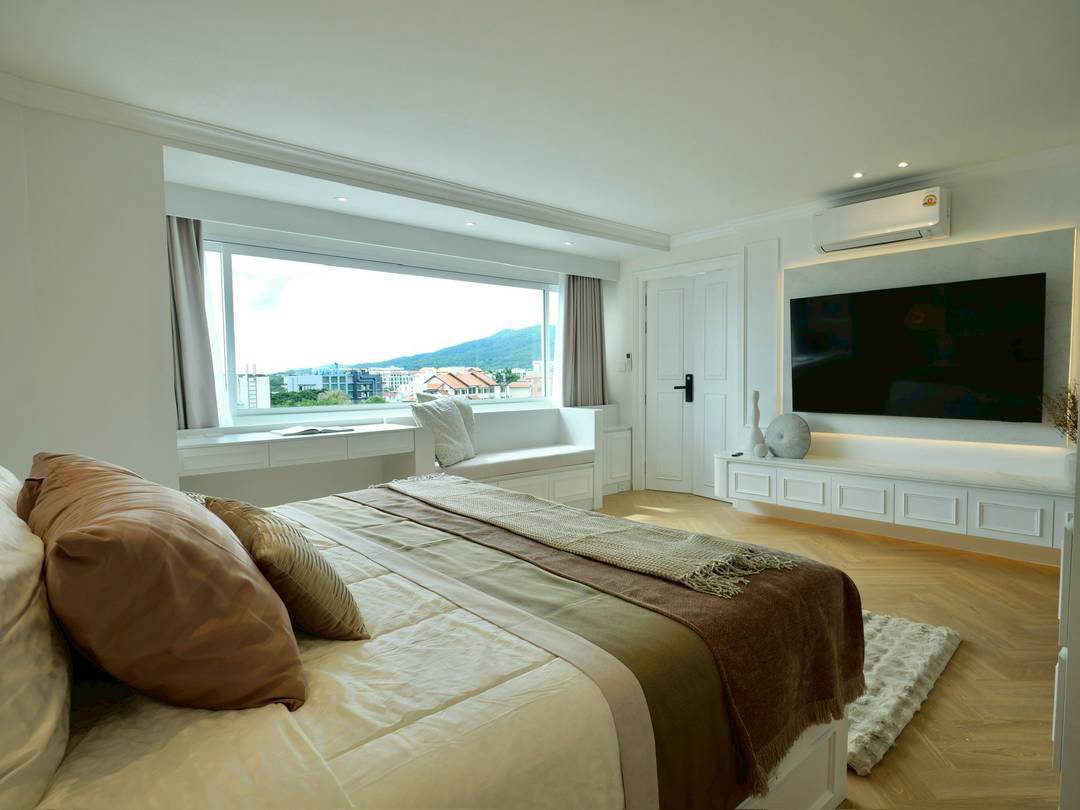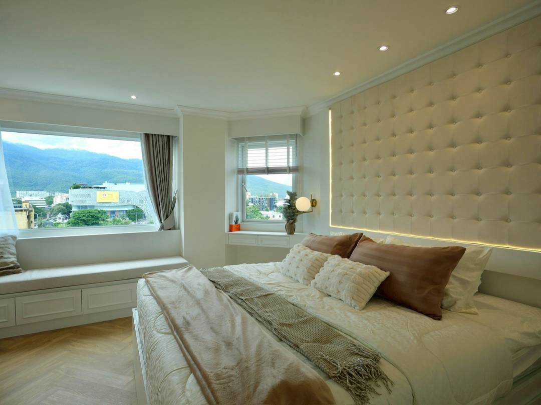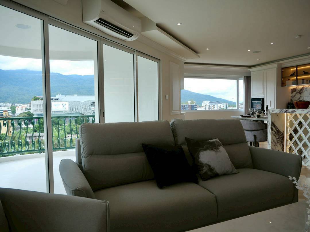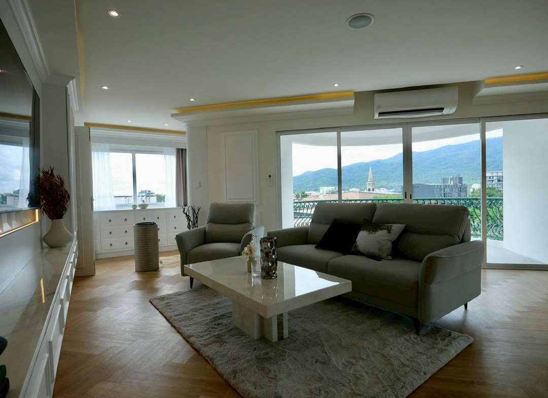 Corner unit with panoramic mountain and city views, located in the heart of Nimman.